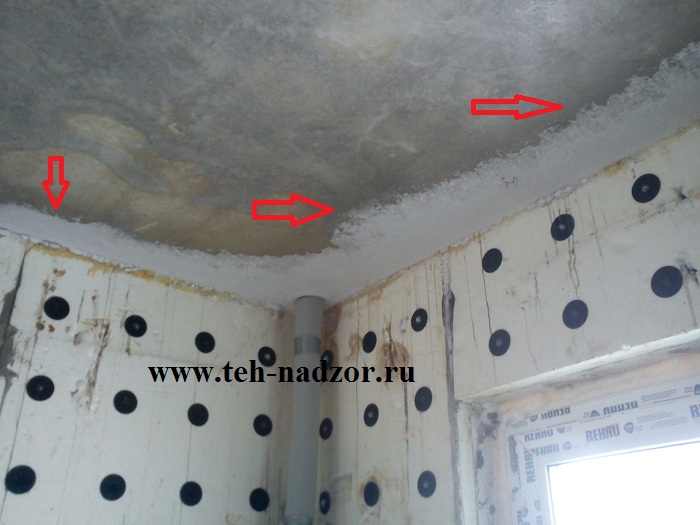 при штукатурке стен и потолков превышал допустимую толщину 25мм. Причина в низкой квалификации исполнителей